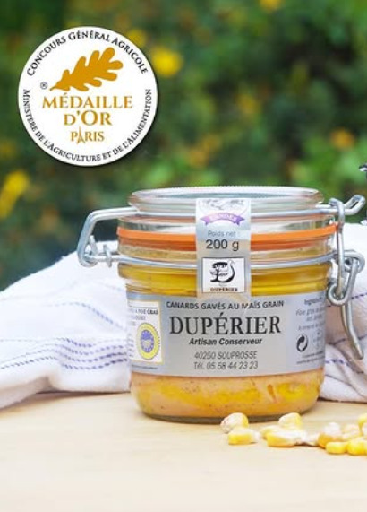 Dupérier et Fils est une entreprise familiale des Landes. La maison élève des canards et oies pour produire foie gras, magrets et terrines. Tout est fabriqué dans le respect de la tradition. Les produits sont naturels et préparés artisanalement.