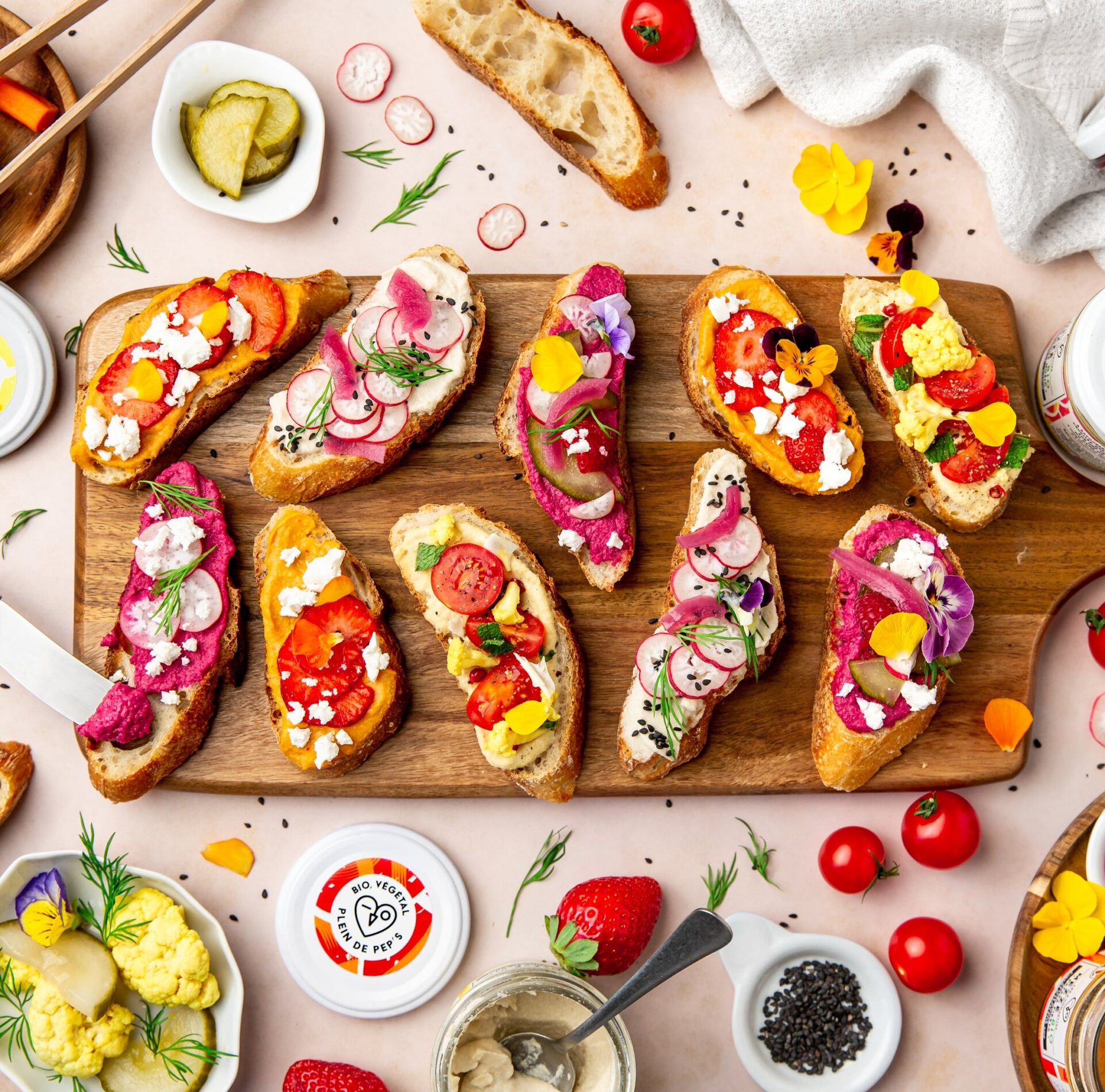 • Mezzés & tartinables végétaux (à base de betterave, pois chiche, légumes divers) — parfaits pour apéritifs, tartines, bowls ou accompagnement.